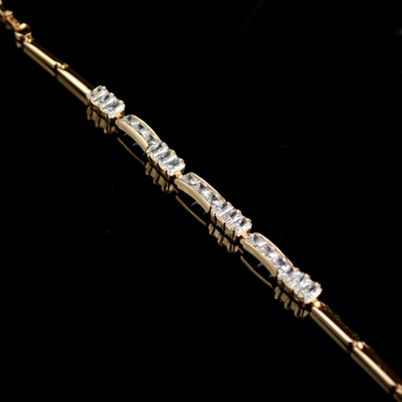 Ένα βραχιόλι που μαγνητίζει τα βλέμματα με τη λάμψη και την κομψότητά του. Σε κίτρινο χρυσό 18 καρατίων στα 0,50 micron και με εκπληκτικούς αυστριακούς κρυστάλλους.